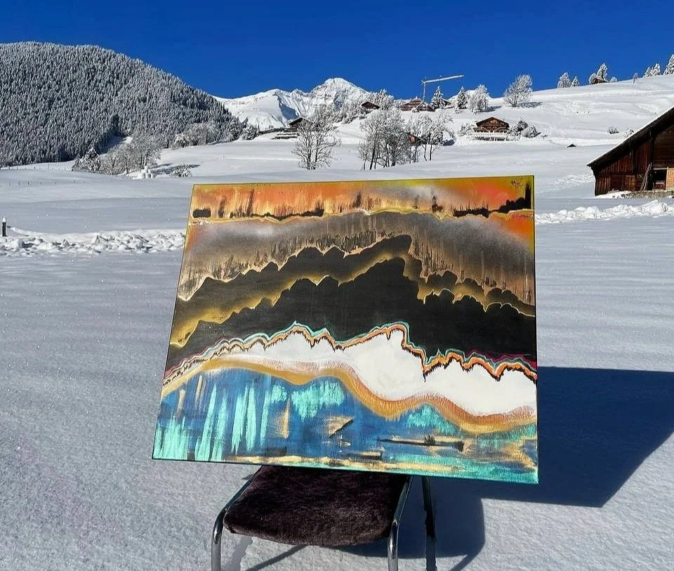 In my abstract paintings I show all my memories of striking landscapes, looking for harmony & authenticity without perspective.